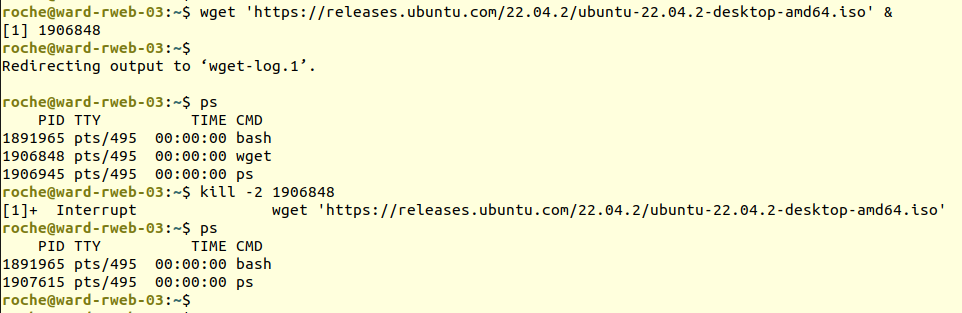 background, then using ps to see the PID of that wget command as it